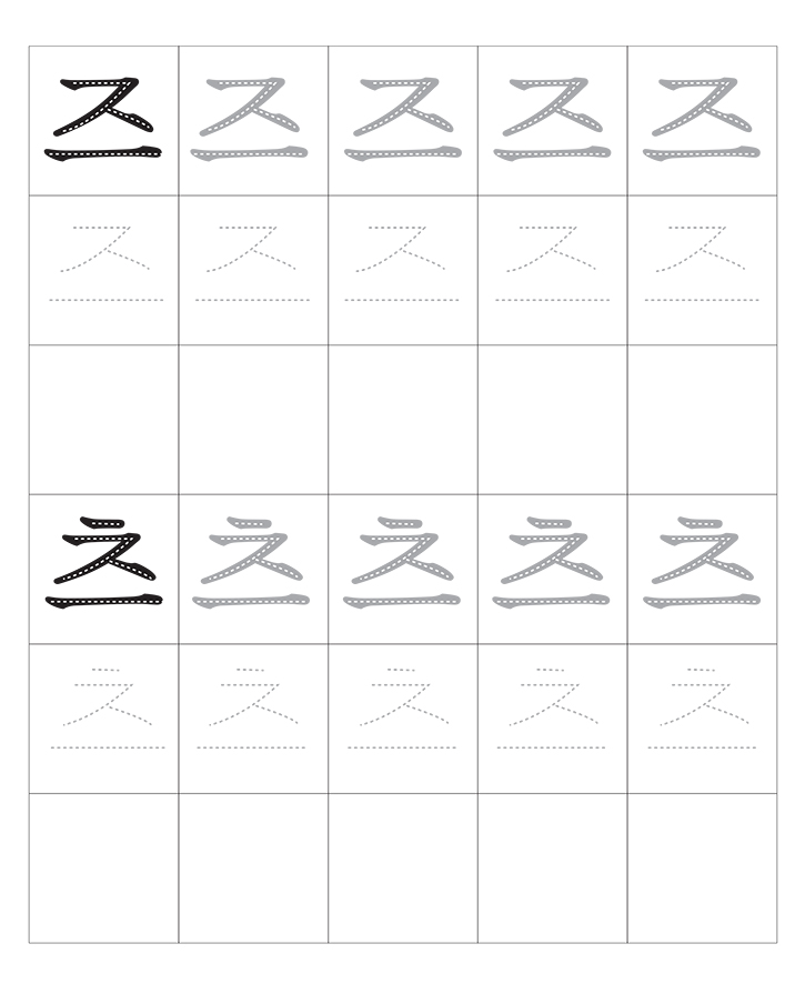 한국어 자음 모음의 조합(즈~츠)입니다. 소리내어 읽고 따라 씁니다. 반복 학습을 통해 한글을 이해합니다. 교사와 부모는 자녀가 잘할 수 있도록 격려하고 도와주세요.
