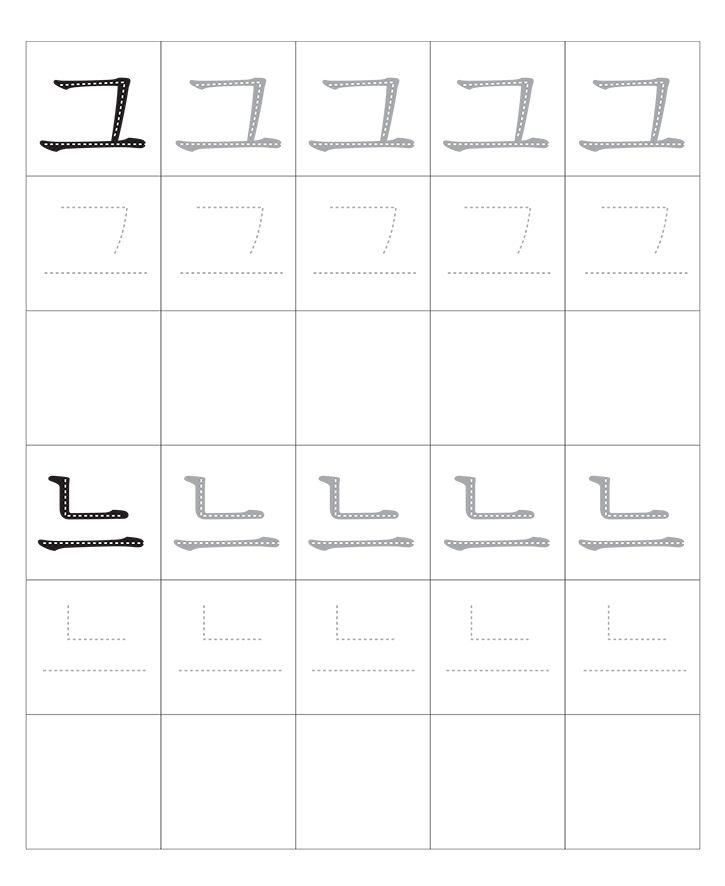 한국어 자음 모음의 조합(그~느)입니다. 소리내어 읽고 따라 씁니다. 반복 학습을 통해 한글을 이해합니다. 교사와 부모는 자녀가 잘할 수 있도록 격려하고 도와주세요.