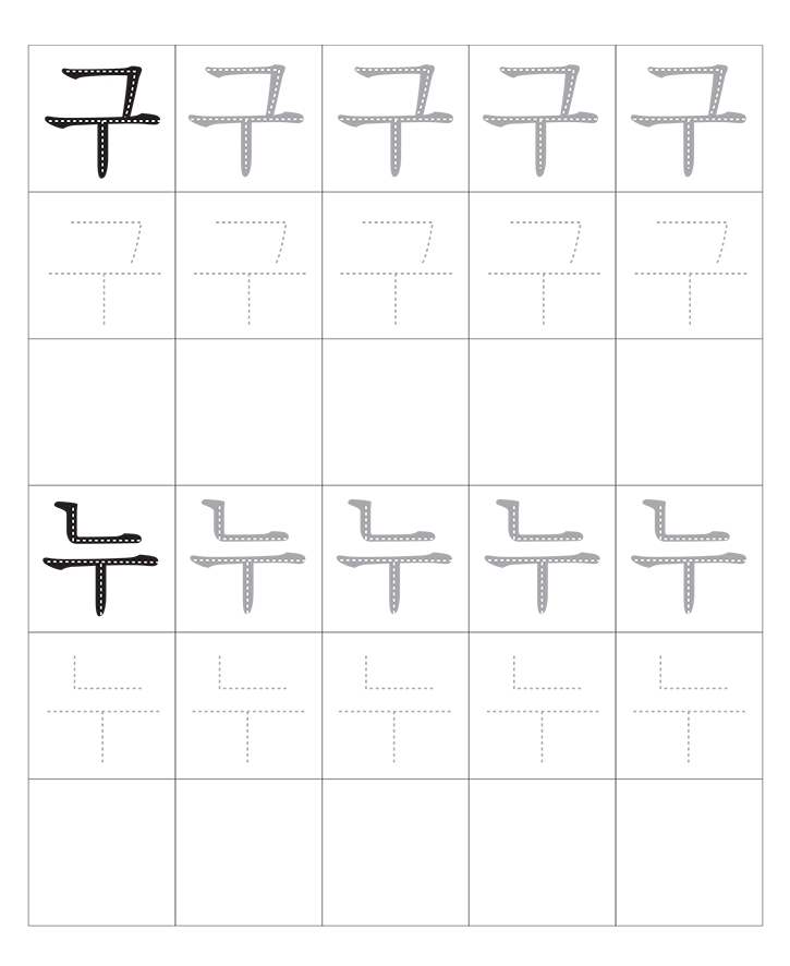 한국어 자음 모음의 조합(구~누)입니다. 소리내어 읽고 따라 씁니다. 반복 학습을 통해 한글을 이해합니다. 교사와 부모는 자녀가 잘할 수 있도록 격려하고 도와주세요.