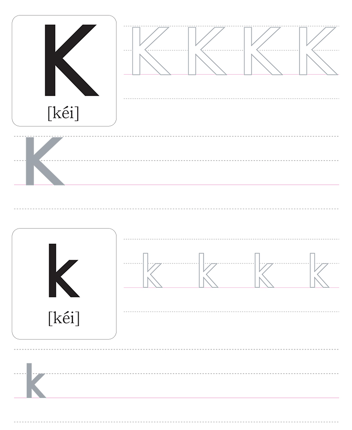 영어 알파벳 대문자(K)와 소문자(k)를 읽고 따라 써보세요.