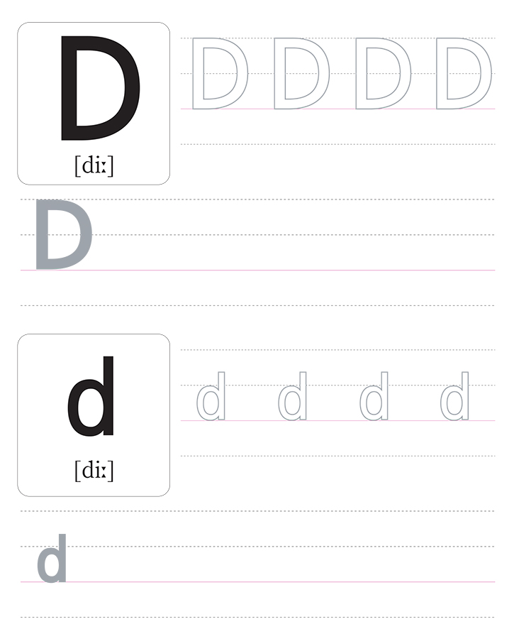 영어 알파벳 대문자(D)와 소문자(d)를 읽고 따라 써보세요.