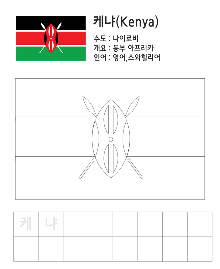케냐에 대해 알아보고 예쁘게 색칠해 보세요.
