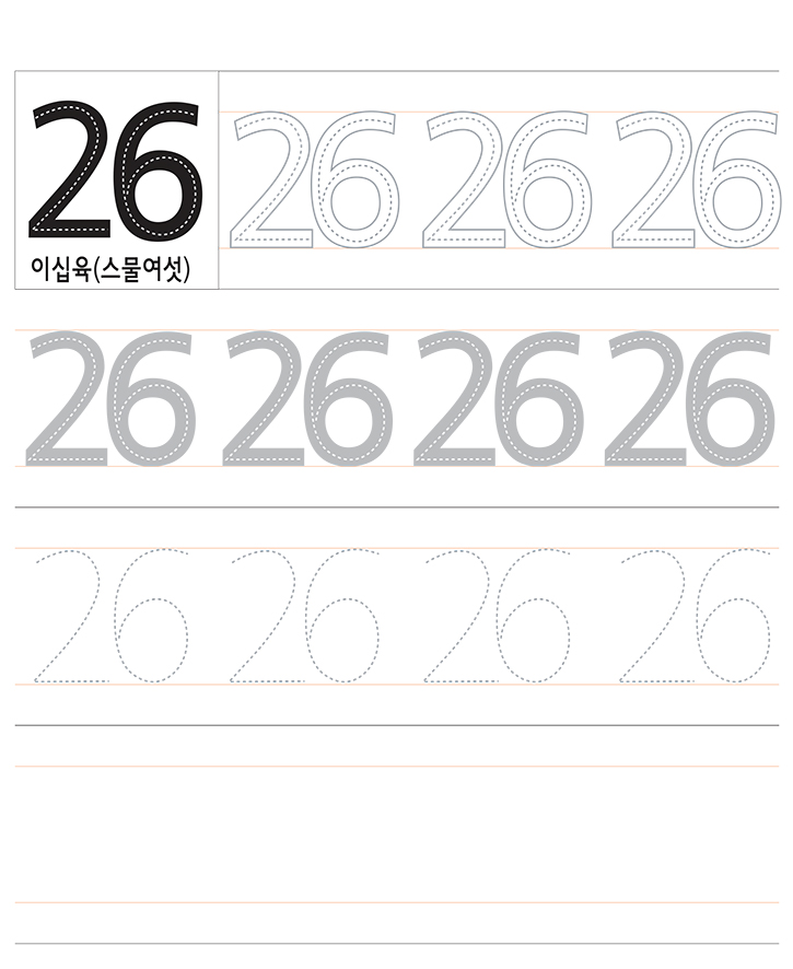 숫자 26을 읽고 따라 쓰세요. 숫자 26에 대해서 이해하고 연습합니다.