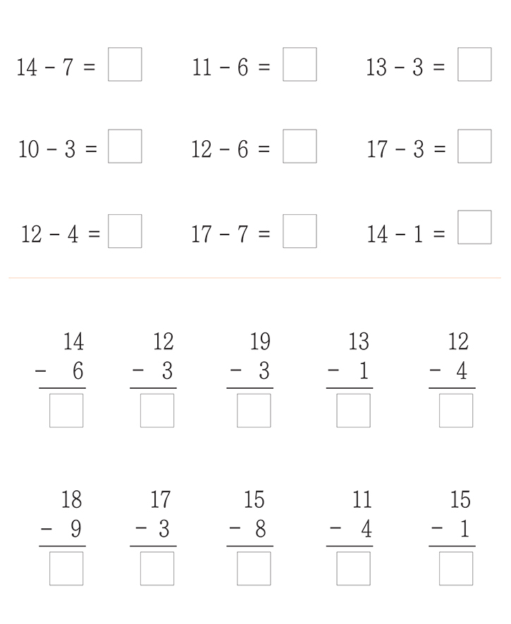 아래의 숫자 빼기를 계산하고 빈칸에 적절한 숫자를 완성하십시오. 반복 학습을 통해 뺄셈을 이해합니다. 교사와 부모는 자녀가 잘할 수 있도록 격려하고 돕습니다.