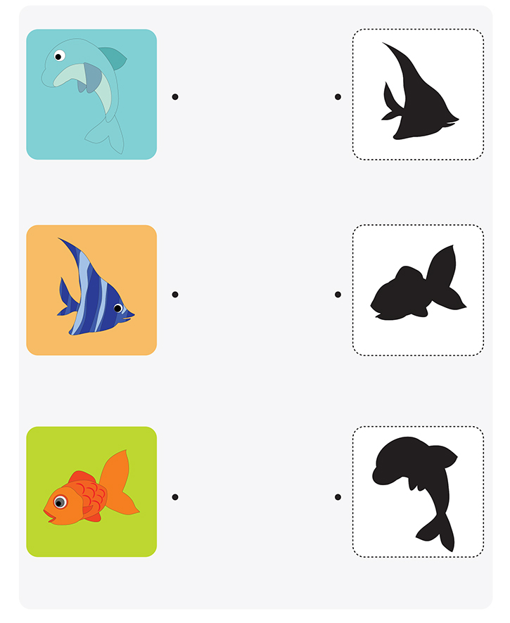 이번 학습지는 다양한 그림을 보고 일치하는 그림자를 찾아 선을 열결하는 게임입니다. 아래 여러가지 그림(돌고래,물고기,금붕어)을 보고 알맞는 그림자를 찾아 선을 열결하세요. 학습을 통해 직관력과 관찰력 향상에 도움이됩니다. 친구들과 함께 재미있게 풀어보세요.