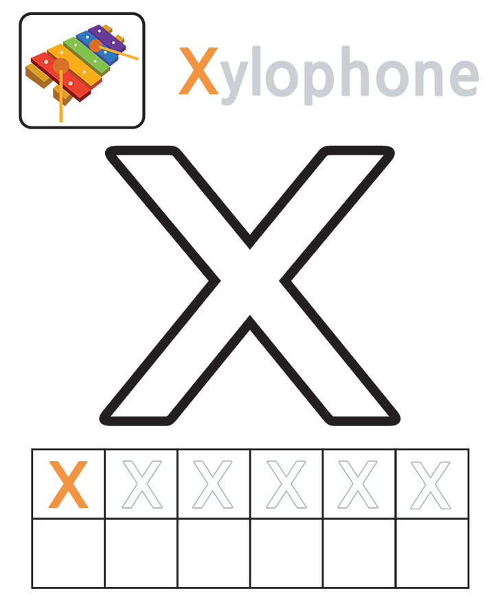 영어 알파벳 (X)색칠하기 입니다. 실로폰 (Xylophone)를 따라 읽고 아래 알파벳을 쓰고 색칠해보세요.
