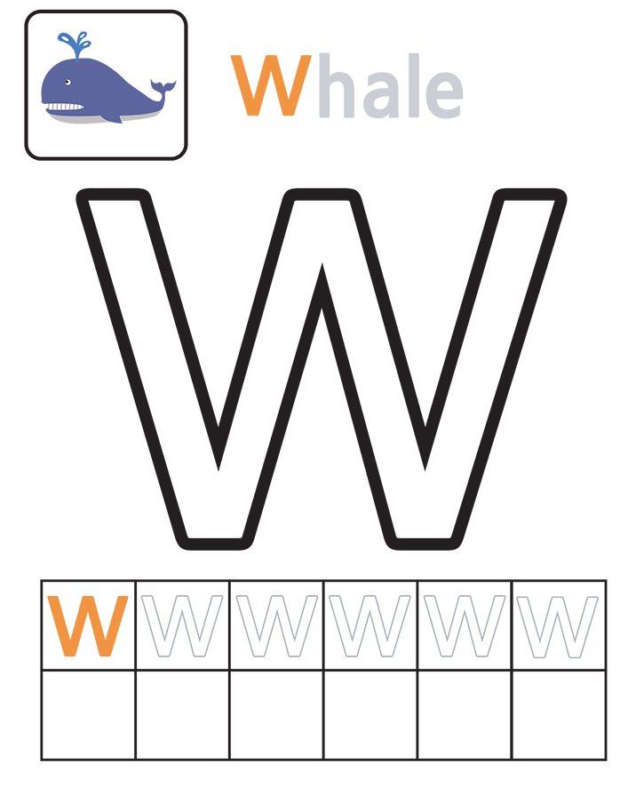 영어 알파벳 (W)색칠하기 입니다. 고래(Whale)를 따라 읽고 아래 알파벳을 쓰고 색칠해보세요.