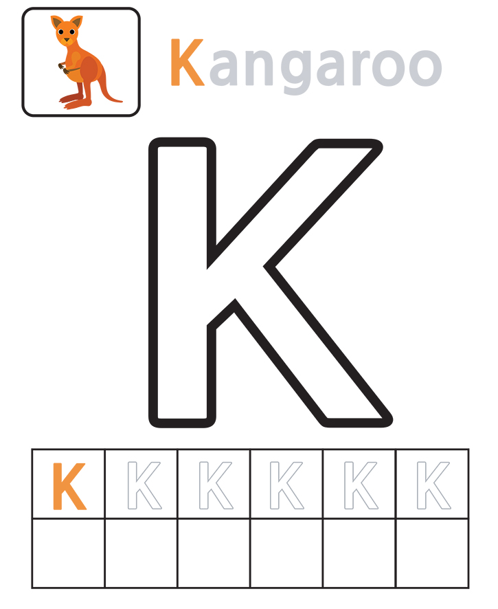 영어 알파벳 (K)색칠하기 입니다. 캥거루(Kangaroo)를 따라 읽고 아래 알파벳을 쓰고 색칠해보세요.