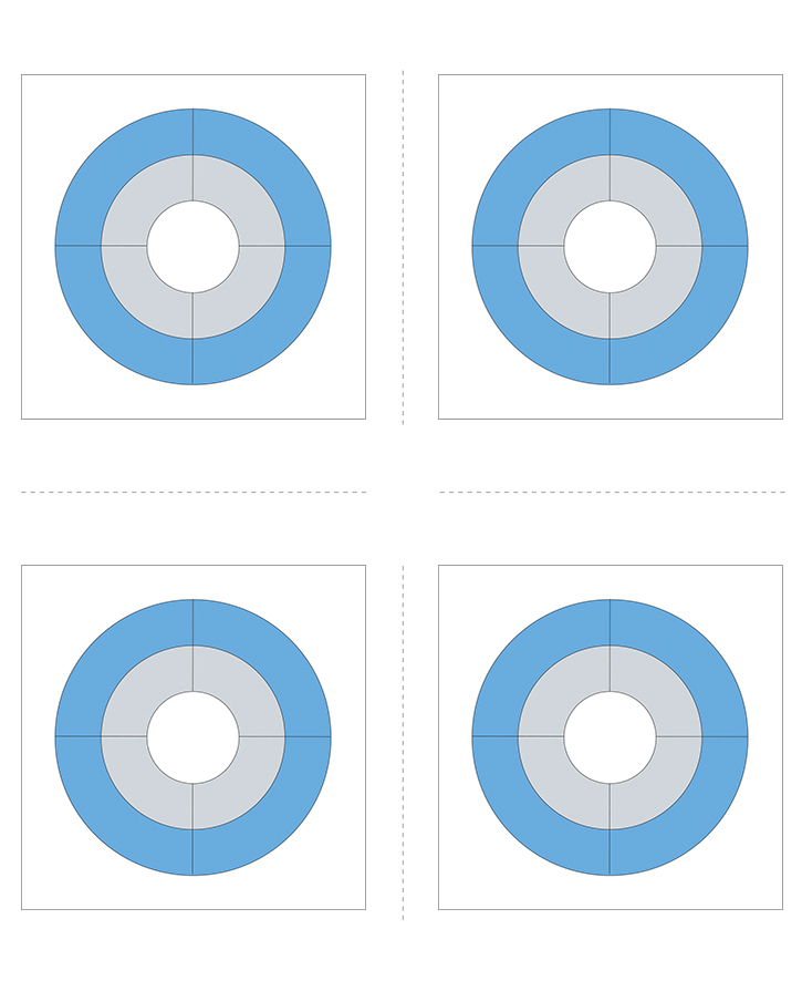 아래 보기에 있는 중심원의 숫자를 확인하고 빈 칸에 들어갈 알맞은 숫자를 적으세요.