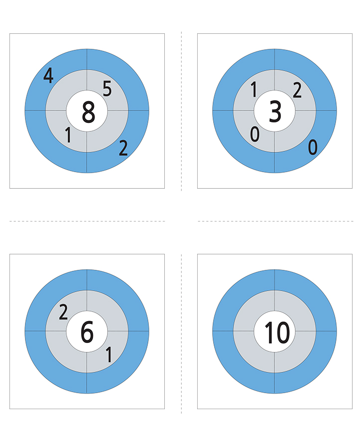 좌우 대각선에 있는 숫자를 조합하여 중심원에 있는 숫자를 완성하는 게임입니다. 빈칸에 알맞은 숫자를 넣어 중심원과 같은 숫자를 완성합니다. 숫자 가르기와 양적개념을 함께 익힐 수 있습니다. 연산은 대각선을 기준으로 합니다. 선생님과 부모님은 아이들을 지도해 주시고 완성된 학습지를 확인해 주세요.