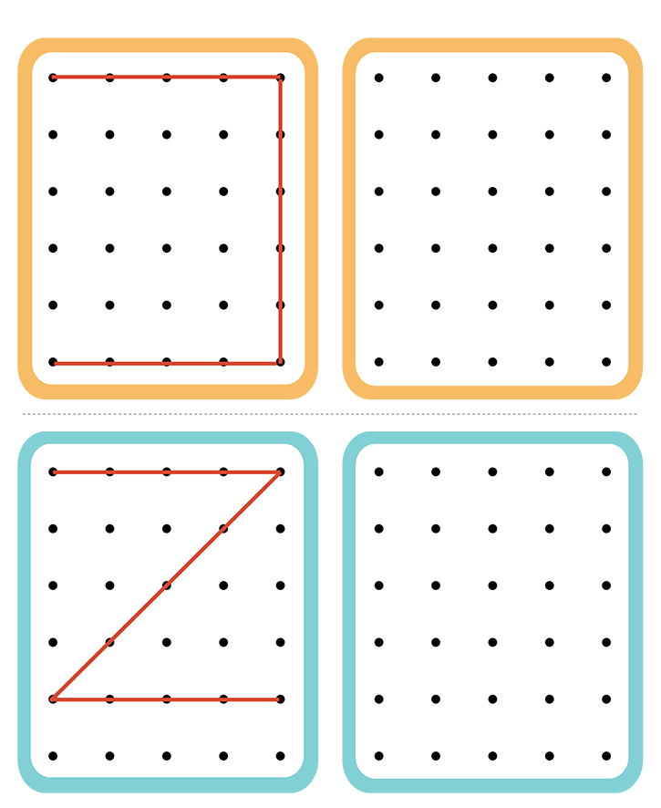 왼쪽 점선 위에 그려진 선을 확인하고, 오른쪽 점선에 그려보세요.