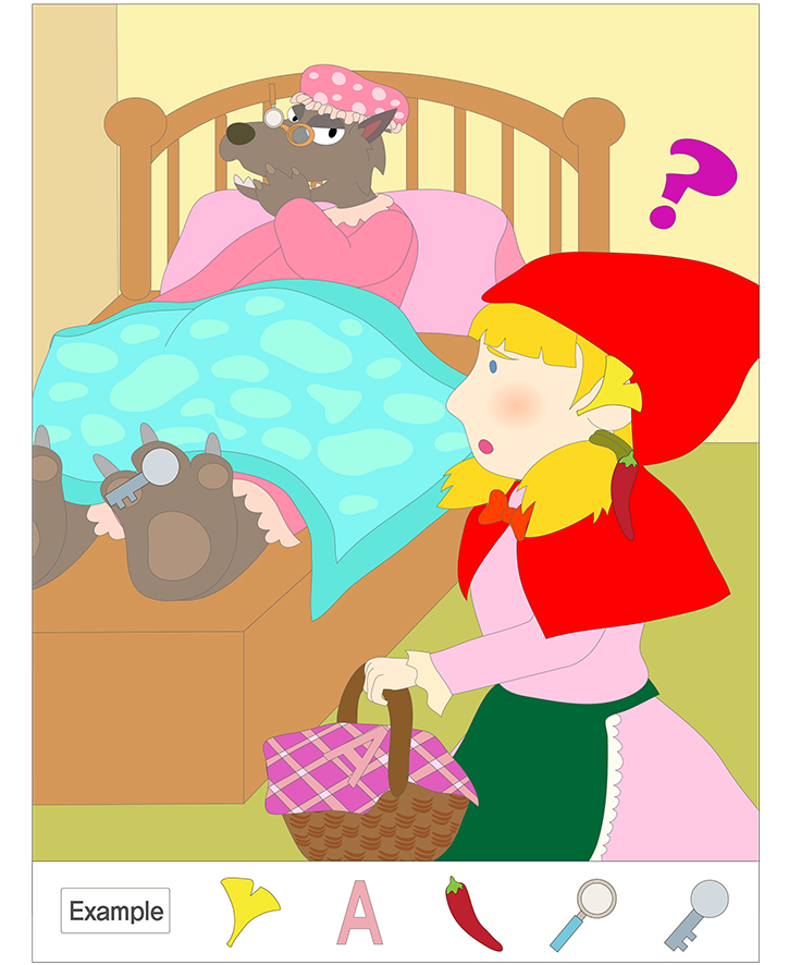 아래 그림(빨간모자)을 찾아보면 숨어있는 그림이 있습니다. 보기에 있는 그림을 찾아 표시하는 게임입니다. 아주 재밌는 게임이 될것입니다. 창의성 발달과,관찰,사고 발달에 도움이 됩니다. 선생님,부모님,친구와 함께 즐겁게 게임해보세요. 그림에 나와있는 주제에 대해 이야기 해보면서 다양한 연관 수업이 가능합니다.