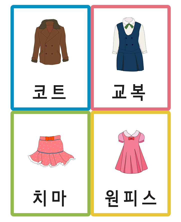 📄 낱말카드A타입_의류/소품(코트,교복,치마,원피스)