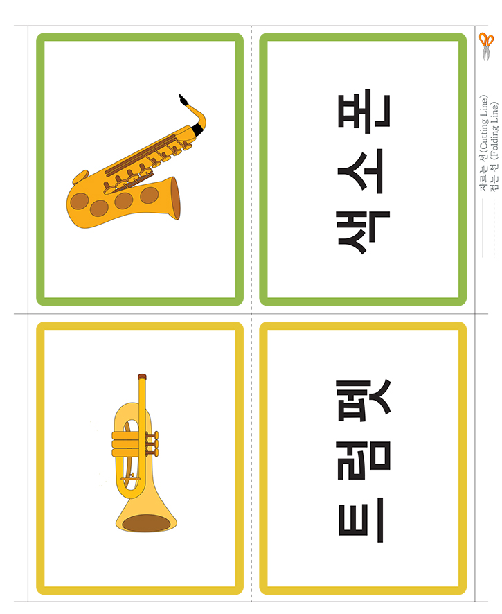 📄 한글 낱말그림카드 B타입_음악/악기(트럼펫,색소폰)