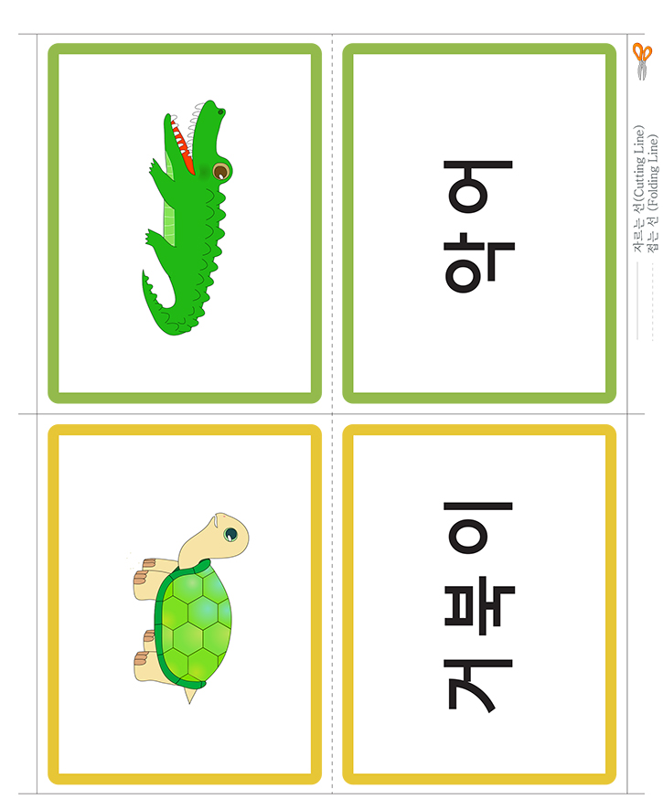 📄 한글 낱말그림카드 B타입_동물(악어,거북이)