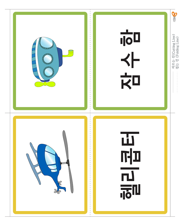 📄 한글 낱말그림카드 B타입_교통수단(잠수함,헬리콥터)