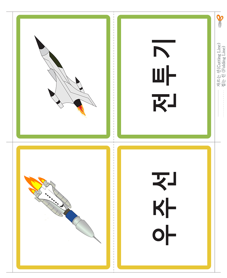 📄 한글 낱말그림카드 B타입_교통수단(전투기,우주선)