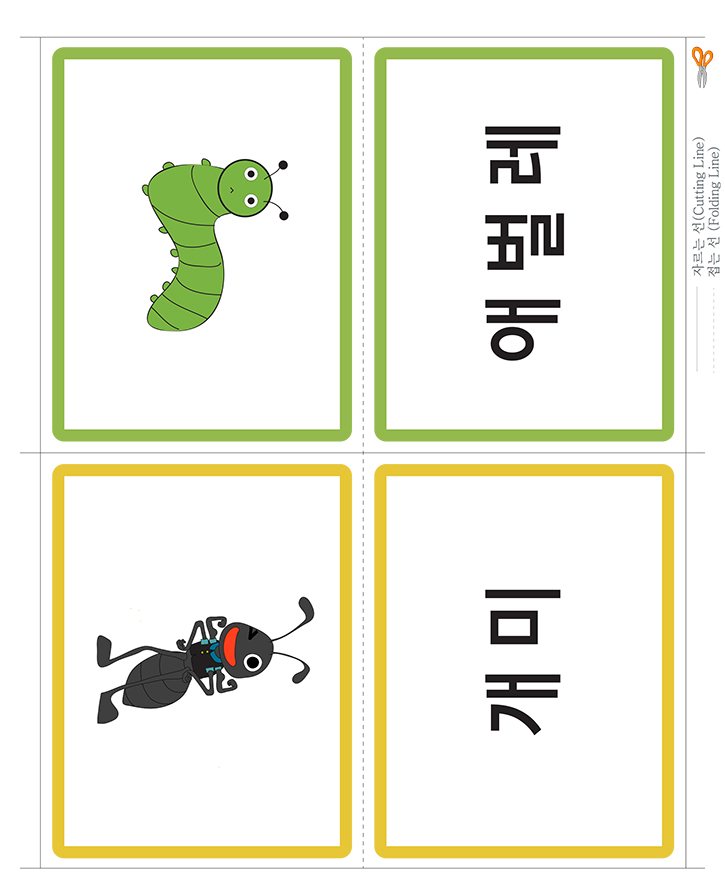 동물(애벌레,개미)을 표현한 낱말 그림카드입니다. 가정이나 학교, 유치원,어린이집에서 유아기에 필요한 한글통글자 익히기, 사물인지, 부교재 등 다양한 영역에서 카드 활용이 가능합니다. 도서나 교재와 함께 활용하세요. 아주 훌륭한 자료가 될 것 입니다. 아래 카드를 출력후 가위로 잘라서 코팅지나 양면테이프, 벨크로 등을 붙여서 활용 할 수 있습니다. 다양한 카드 사용법을 공유하여 주세요. 많은 도움이 될것입니다.