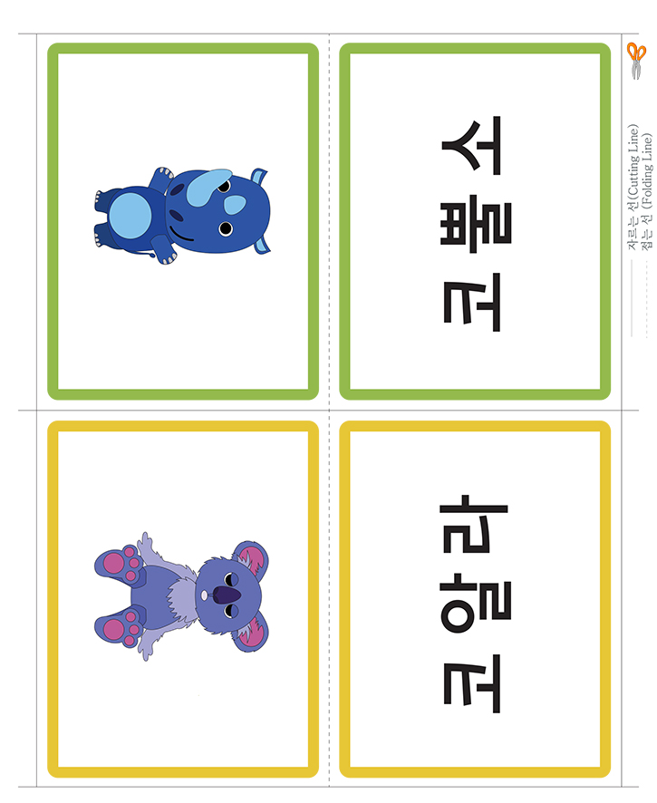 📄 한글 낱말그림카드 B타입_동물(코뿔소,코알라)
