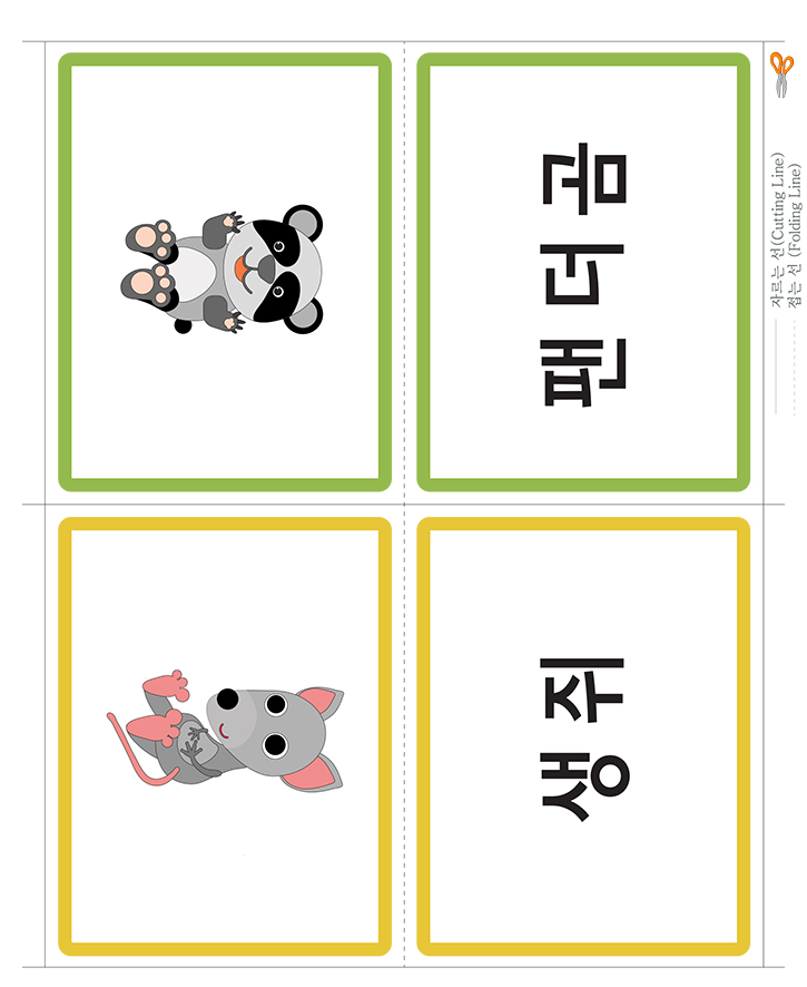 📄 한글 낱말그림카드 B타입_동물(팬더,생쥐)