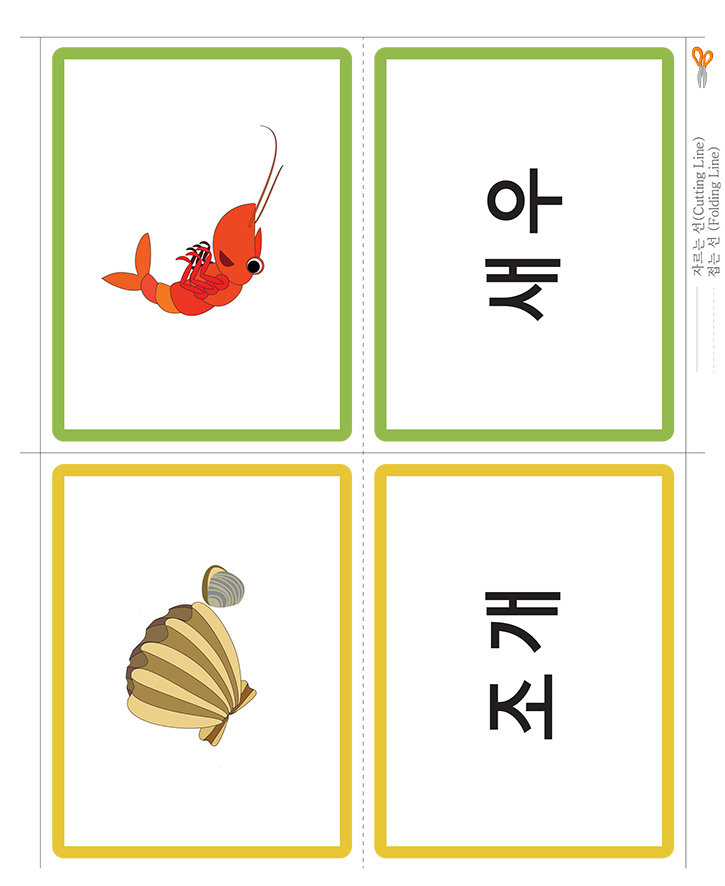 동물(새우,조개)을 표현한 낱말 그림카드입니다. 가정이나 학교, 유치원,어린이집에서 유아기에 필요한 한글통글자 익히기, 사물인지, 부교재 등 다양한 영역에서 카드 활용이 가능합니다. 도서나 교재와 함께 활용하세요. 아주 훌륭한 자료가 될 것 입니다. 아래 카드를 출력후 가위로 잘라서 코팅지나 양면테이프, 벨크로 등을 붙여서 활용 할 수 있습니다. 다양한 카드 사용법을 공유하여 주세요. 많은 도움이 될것입니다.