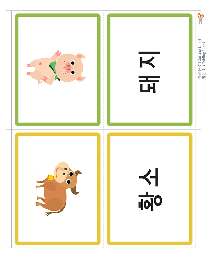 동물(돼지,황소)을 표현한 낱말 그림카드입니다. 가정이나 학교, 유치원,어린이집에서 유아기에 필요한 한글통글자 익히기, 사물인지, 부교재 등 다양한 영역에서 카드 활용이 가능합니다. 도서나 교재와 함께 활용하세요. 아주 훌륭한 자료가 될 것 입니다. 아래 카드를 출력후 가위로 잘라서 코팅지나 양면테이프, 벨크로 등을 붙여서 활용 할 수 있습니다. 다양한 카드 사용법을 공유하여 주세요. 많은 도움이 될것입니다.