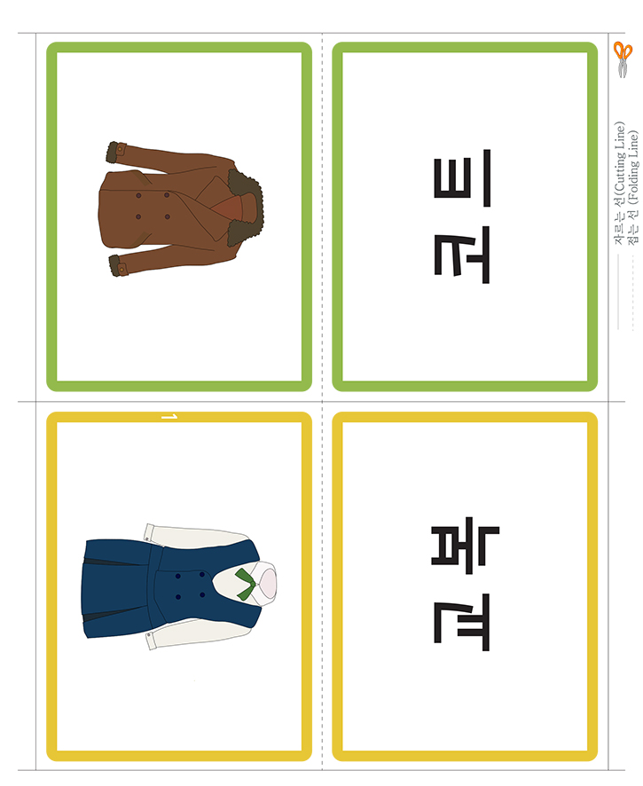 📄 한글 낱말그림카드 B타입_의류/소품(코트,교복)