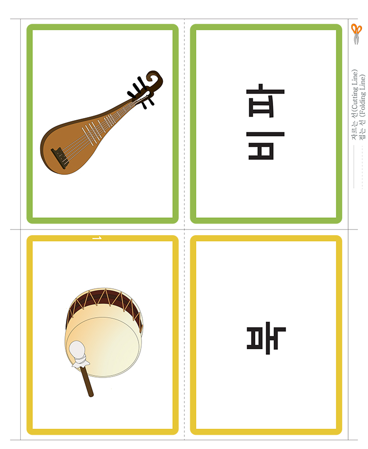 음악/악기(비파,북)을 표현한 낱말 그림카드입니다. 가정이나 학교, 유치원,어린이집에서 유아기에 필요한 한글통글자 익히기, 사물인지, 부교재 등 다양한 영역에서 카드 활용이 가능합니다. 도서나 교재와 함께 활용하세요. 아주 훌륭한 자료가 될 것 입니다. 아래 카드를 출력후 가위로 잘라서 코팅지나 양면테이프, 벨크로 등을 붙여서 활용 할 수 있습니다. 다양한 카드 사용법을 공유하여 주세요. 많은 도움이 될것입니다.