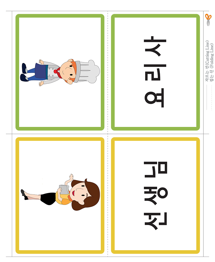 📄 한글 낱말그림카드 B타입_직업(선생님,요리사)