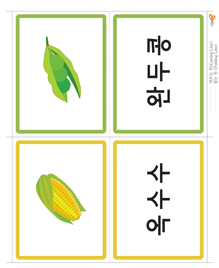 📄 한글 낱말그림카드 B타입_과일/채소(옥수수,완두콩)