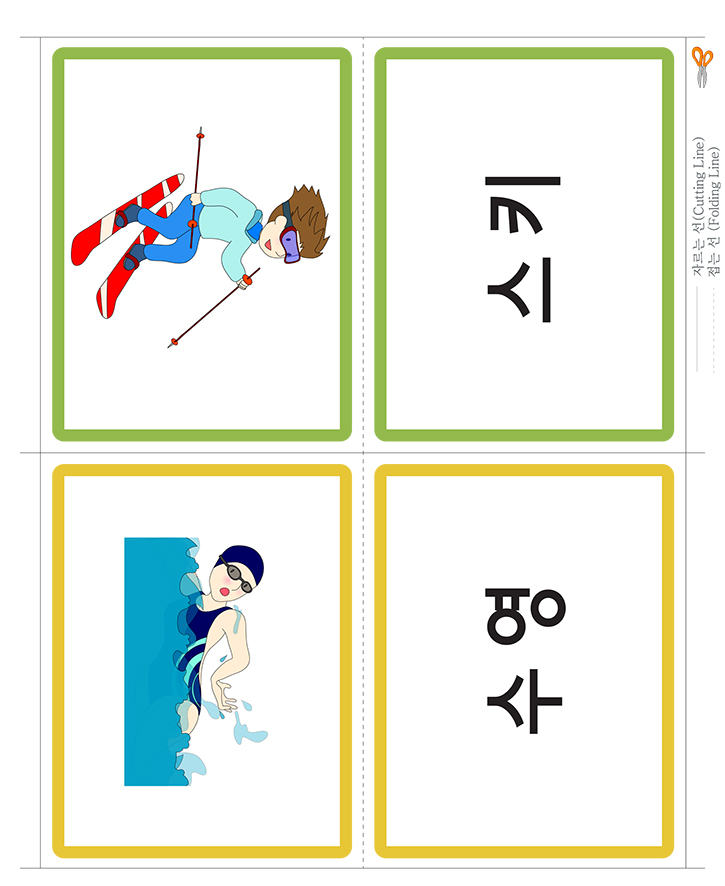 📄 한글 낱말그림카드 B타입_스포츠(스키,수영)