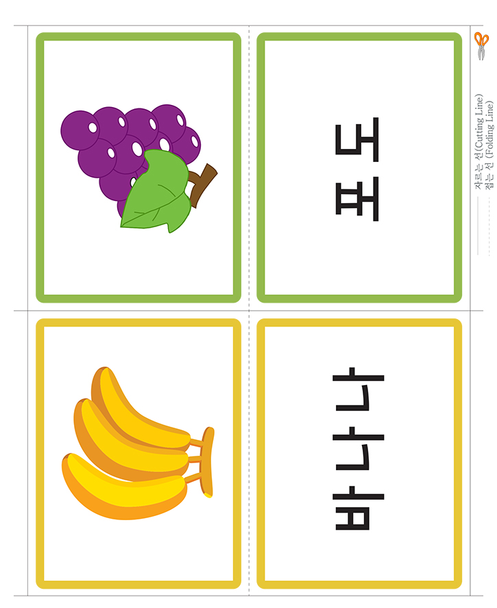 📄 한글 낱말그림카드 B타입_과일/채소(포도,바나나)