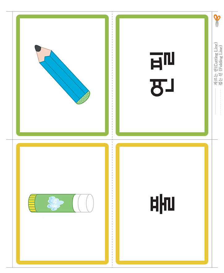 📄 한글 낱말그림카드 B타입_생활/사무(연필,풀)