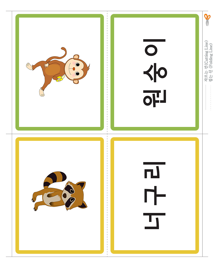 📄 한글 낱말그림카드 B타입_동물(원숭이,너구리)