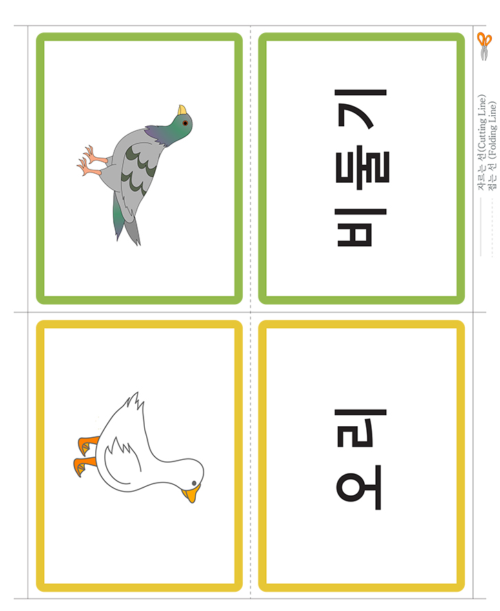 📄 한글 낱말그림카드 B타입_동물(비둘기,오리)