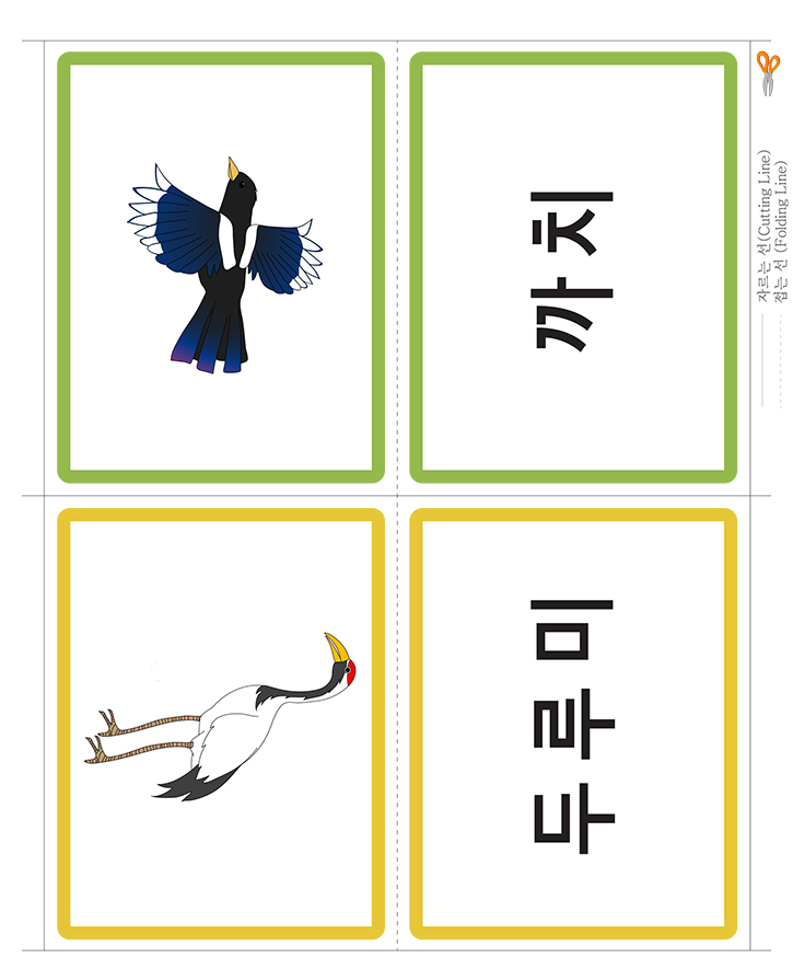 📄 한글 낱말그림카드 B타입_동물(까치,두루미)
