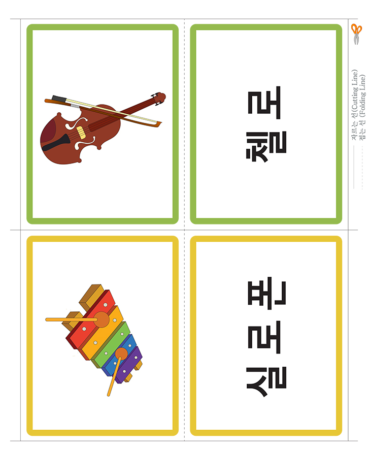 📄 한글 낱말그림카드 B타입_음악/악기(실로폰,첼로)