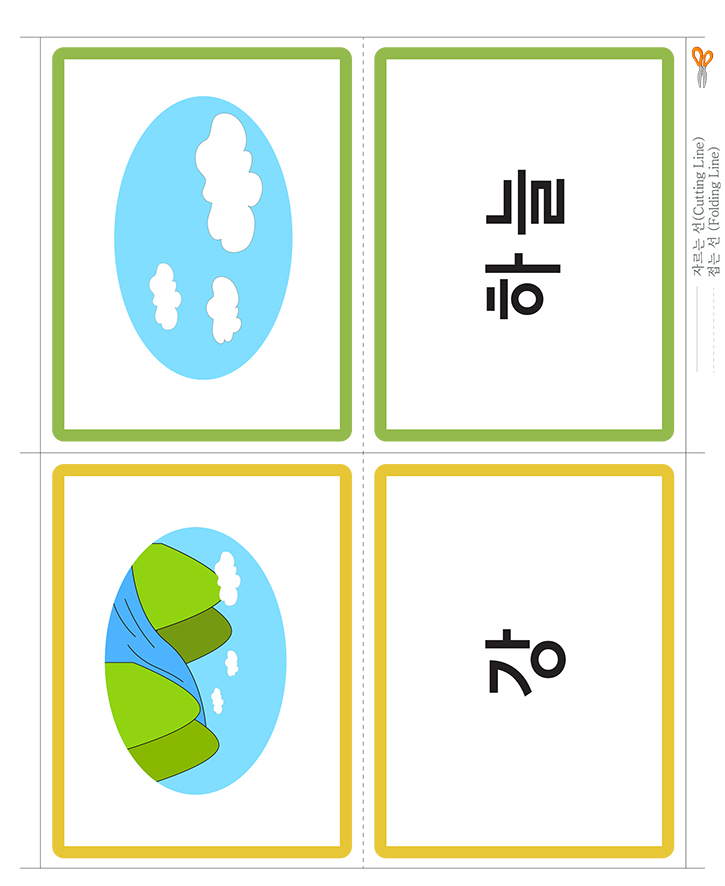 색상(강,하늘)을 표현한 낱말 그림카드입니다. 가정이나 학교, 유치원,어린이집에서 유아기에 필요한 한글통글자 익히기, 사물인지, 부교재 등 다양한 영역에서 카드 활용이 가능합니다. 도서나 교재와 함께 활용하세요. 아주 훌륭한 자료가 될 것 입니다. 아래 카드를 출력후 가위로 잘라서 코팅지나 양면테이프, 벨크로 등을 붙여서 활용 할 수 있습니다. 다양한 카드 사용법을 공유하여 주세요. 많은 도움이 될것입니다.