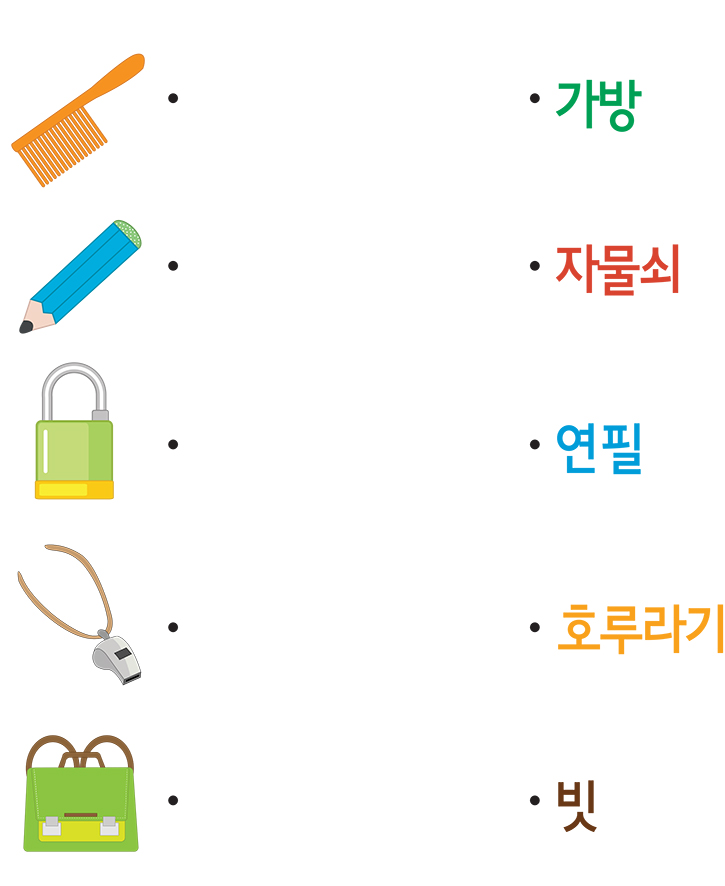 그림과 같은 뜻을 가진 낱말을 찾아 선을 연결하세요.