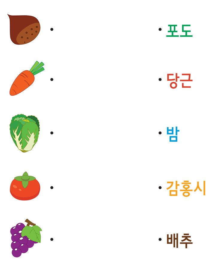 그림과 같은 뜻을 가진 낱말을 찾아 선을 연결하세요.