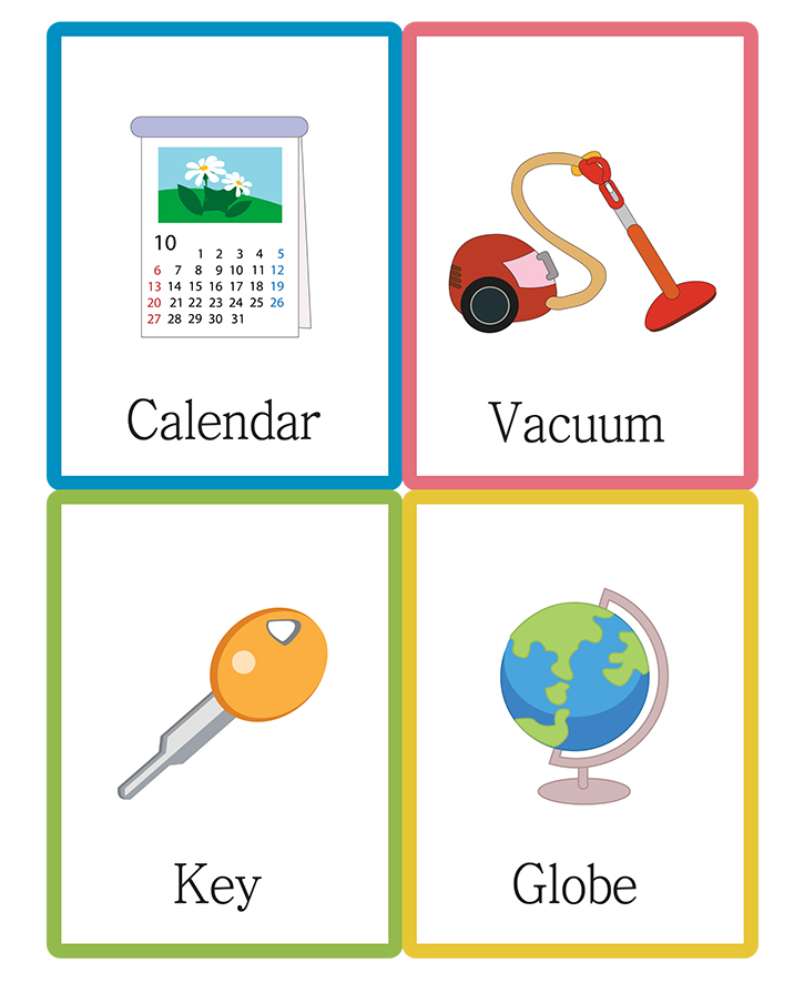 📄 영어단어 그림카드 A타입_생활/사무(달력,청소기,열쇠,모자)