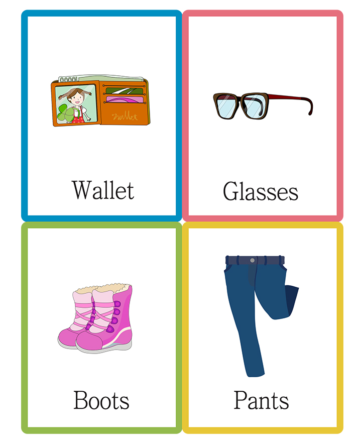 📄 영어단어 그림카드 A타입_의류/소품(지갑,안경,부츠,바지)