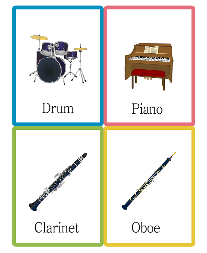 📄 영어단어 그림카드 A타입_음악/악기(드럼,피아노,클라리넷,오보에)