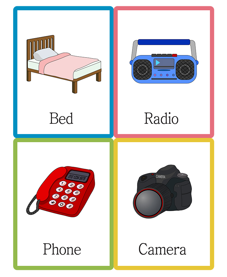 📄 영어단어 그림카드 A타입_생활/사무(침대,라디오,전화기,카메라)