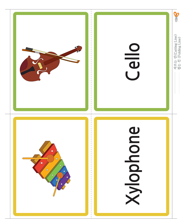 📄 영어단어 그림카드 B타입_음악/악기(첼로,실로폰)