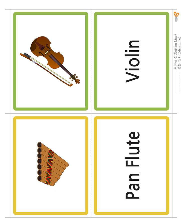 📄 영어단어 그림카드 B타입_음악/악기(바이올린,팬플루트)