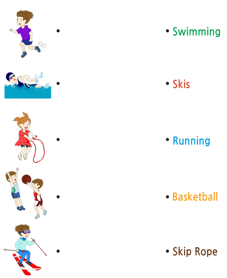 이번 학습지는 다양한 그림과 일치하는 영어 단어를 찾아 선을 연결하는 것 입니다. 일치하는 그림과 영어단어를 찾아 선을 연결하세요 학습을 통해 그림과 단어의 의미를 배울수 있습니다. 손근육 발달과 어휘력 향상에 도움이 됩니다. 선생님과 학부모님은 (단어쓰기,그림카드)를 함께 사용하면서 아이들을 지도해 주세요.