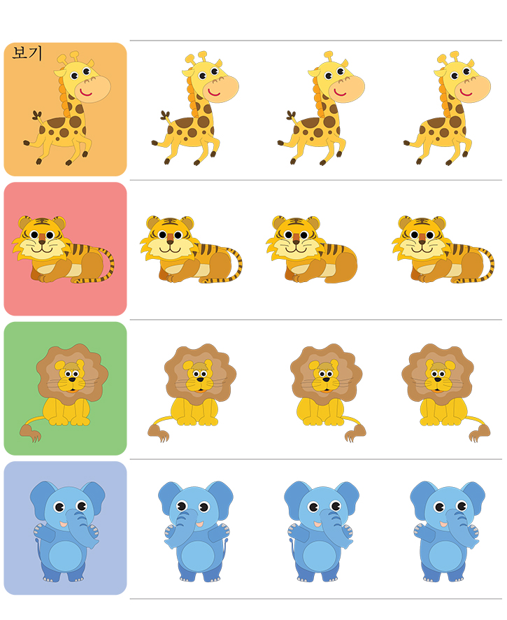 📄 비교관찰_같은그림찾기(기린,호랑이,사자,코끼리)