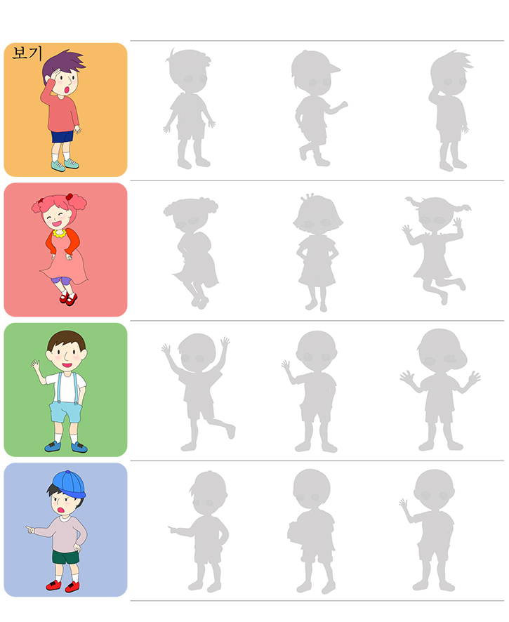 이번 학습지는 다양한 그림을 보고 일치하는 그림자를 찾아 표시하는 게임입니다. 아래 여러가지 그림(어린이,율동,소년)을 보고 알맞는 그림자를 찾으세요. 학습을 통해 직관력과 관찰력 향상에 도움이됩니다. 친구들과 함께 재미있게 풀어보세요.