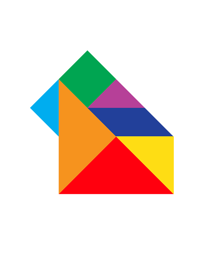 칠교조각을 활용하여 다양한 퍼즐 놀이를 해보세요. (활용TIP) 코팅하여 밑판으로 사용하면 좋아요.